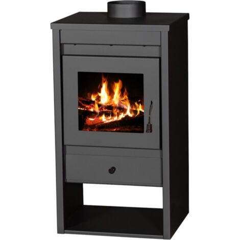Poêle à bois à chargement frontal en acier, conçu pour offrir une chaleur efficace et agréable. Avec une puissance de 5 à 7 kW, il est idéal pour des pièces allant jusqu'à 100 m³. Son compartiment inférieur pratique permet de stocker le bois facilement, tout en ajoutant une touche esthétique à votre espace de vie.Spécifications techniques