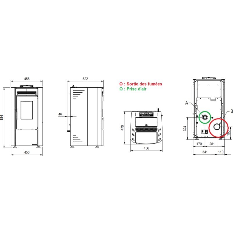 - Sortie des fumées (mm): Ø 80