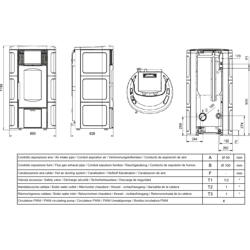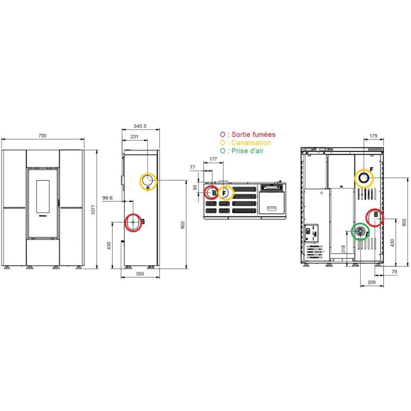Caractéristiques techniques du Poêle à granules étanche - FIREMATIC O9 7.9 kW