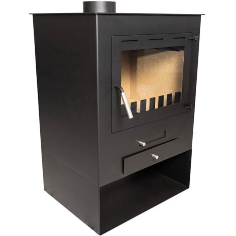 Ce poêle à bois est compatible avec des bûches de 45 cm et peut être utilisé avec divers systèmes de fumisterie, qui ne sont pas inclus.