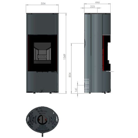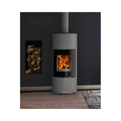 Poêle à bois Terrasson – Habillage fonte peint gris – Porte vitrée – Chargement avant.